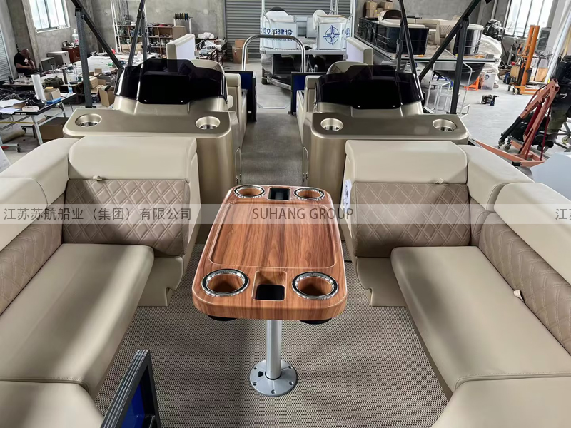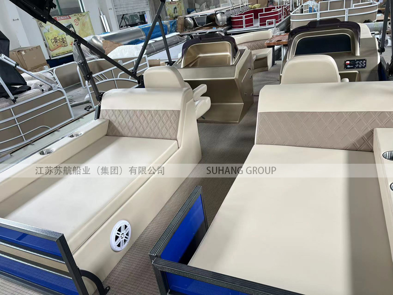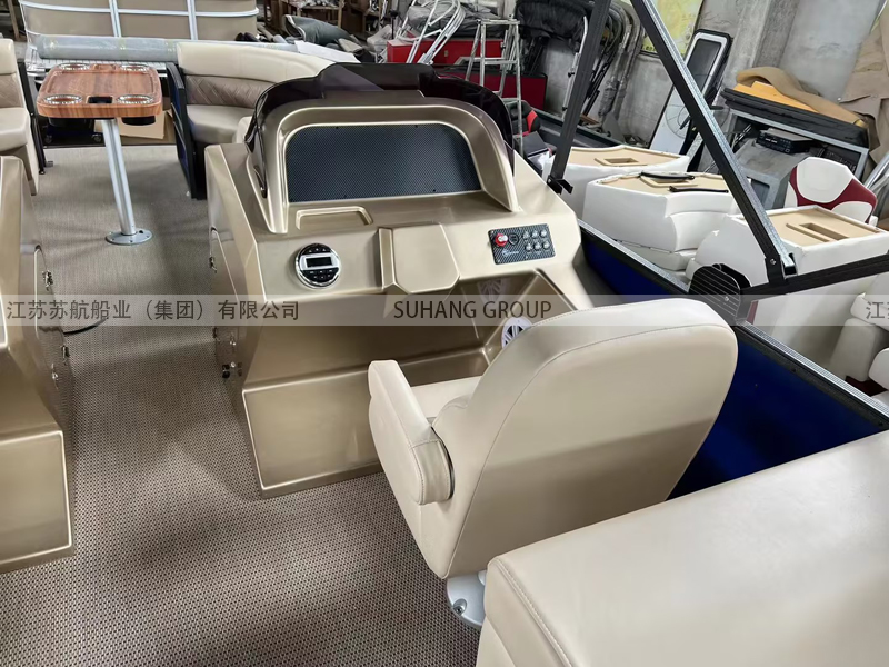 此款浮筒船采用3個鋁合金浮筒,確保穩(wěn)定性。不論是湖面還是海面,它都能平穩(wěn)運行,并帶給我安全可靠的旅行體驗。配備了進口雅馬哈四沖程舷外掛機90HP引擎,使得它夠快速穿越內(nèi)河或者沿海水面。 寬敞的休息區(qū)和儲物空間,能夠帶上旅行所必備的裝備和物品,盡情享受水上旅游。此浮筒船設(shè)施齊全,配備了舒適的座椅、先進的導(dǎo)航系統(tǒng)和音響設(shè)備,是水上休閑游覽的優(yōu)選。