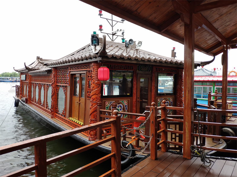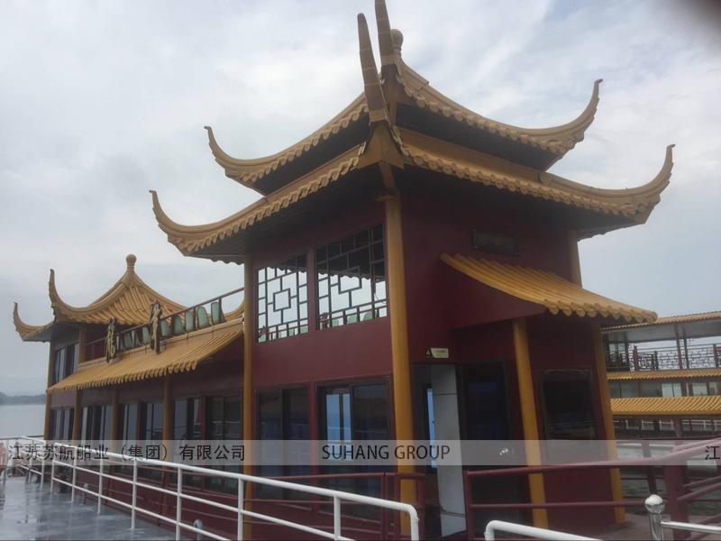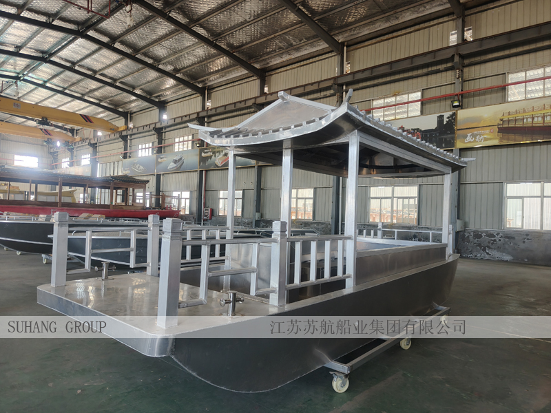 鋁合金畫舫船是采用鋁合金材質(zhì)打造的畫舫船。鋁合金畫舫船上的建筑采用了中國(guó)古代建筑的設(shè)計(jì)風(fēng)格,包含飛檐翹角、玲瓏精致的古亭臺(tái)樓閣,美人靠、盤龍柱子、彩畫、精致雕刻等裝飾元素。此外,畫舫船的船尾設(shè)計(jì)也是一大看點(diǎn),雕花欄桿與船艙、船頭的雕刻遙相呼應(yīng),船身四周貼著浮雕祥云,增添了富貴、華麗的氣質(zhì)。