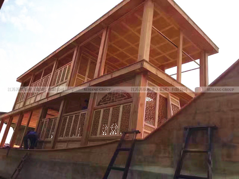 如懿傳木質畫舫船是《如懿傳》影視劇組根據(jù)影視需求定制的影視道具船,它是由三艘豪華仿古木質畫舫船組成。