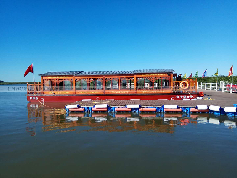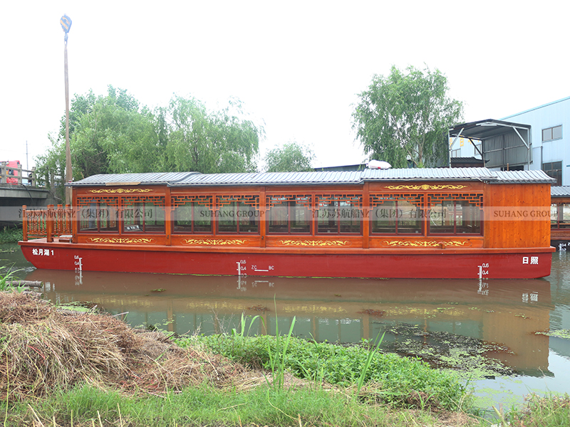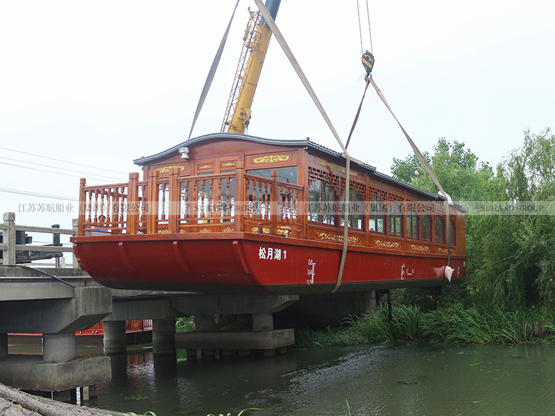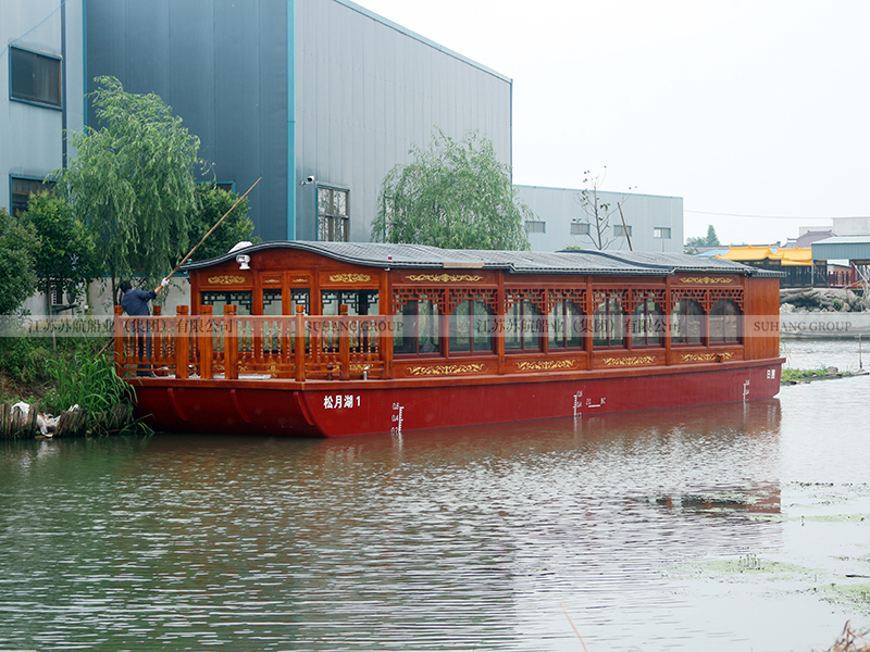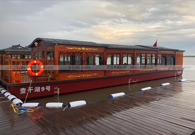 此款19.9米的畫舫游船屬于單層畫舫船中的大型畫舫船,常規(guī)畫舫船的長度在7-25米,載荷人數(shù)在10-100人。蘇航船業(yè)系專業(yè)游船生產(chǎn)廠家,可以定制生產(chǎn)各種款式、各種規(guī)格、各種功能的畫舫船。