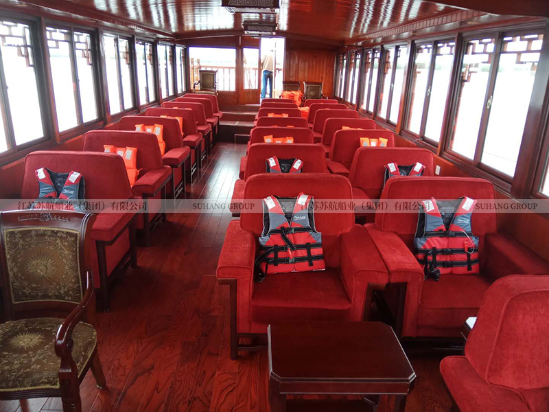 大型畫舫船通常規(guī)格尺寸及載客數(shù)量都比較大,通常在30人以上。大型畫舫船可以采用單層船體結(jié)構(gòu)設(shè)計(jì),較多見的大型畫舫船是采用多層復(fù)雜的船體結(jié)構(gòu)設(shè)計(jì),滿足大型畫舫船多種功能需求及設(shè)施設(shè)備,以承載更多的乘客量。相對來講小型畫舫船的船體結(jié)構(gòu)比較單一,通常是單層畫舫船,載客量在14人以下,用于承載較少的游客,進(jìn)行較少成員或小組織范圍的水上游覽活動(dòng)?。