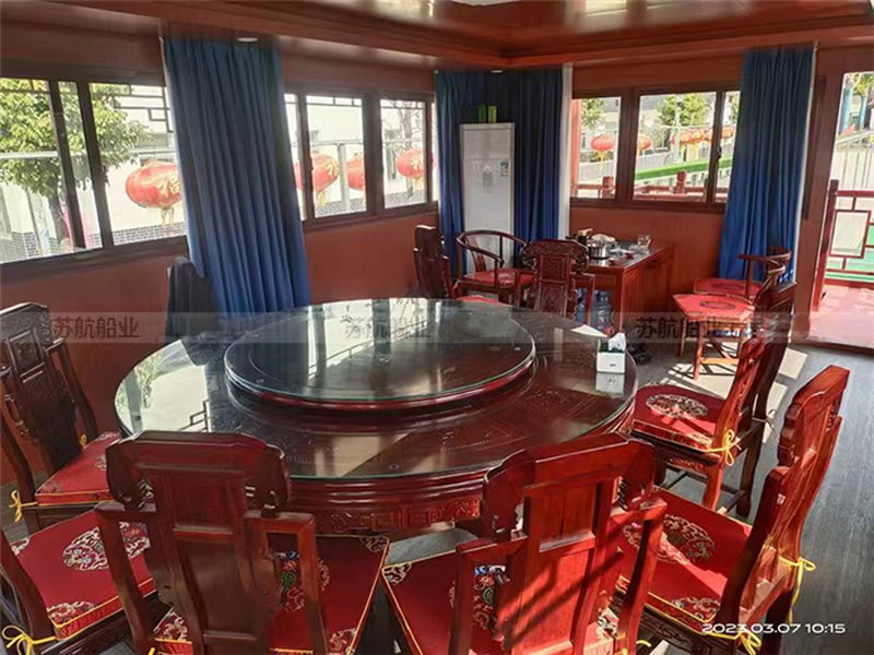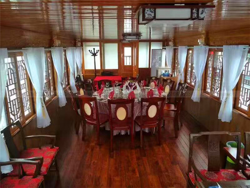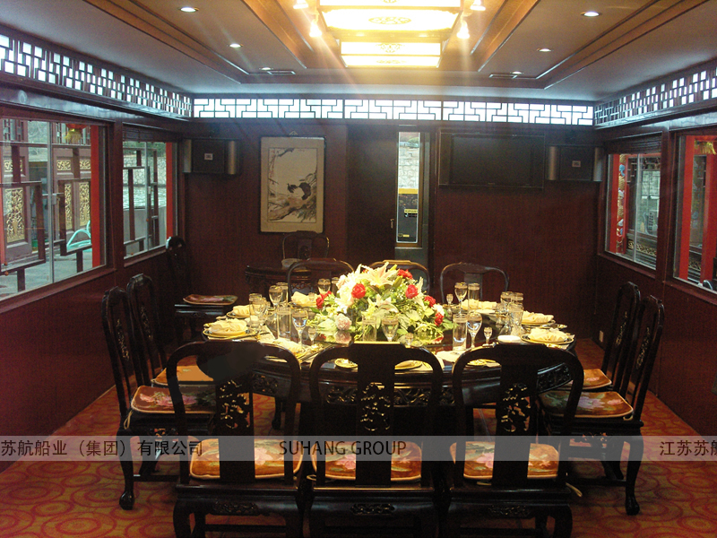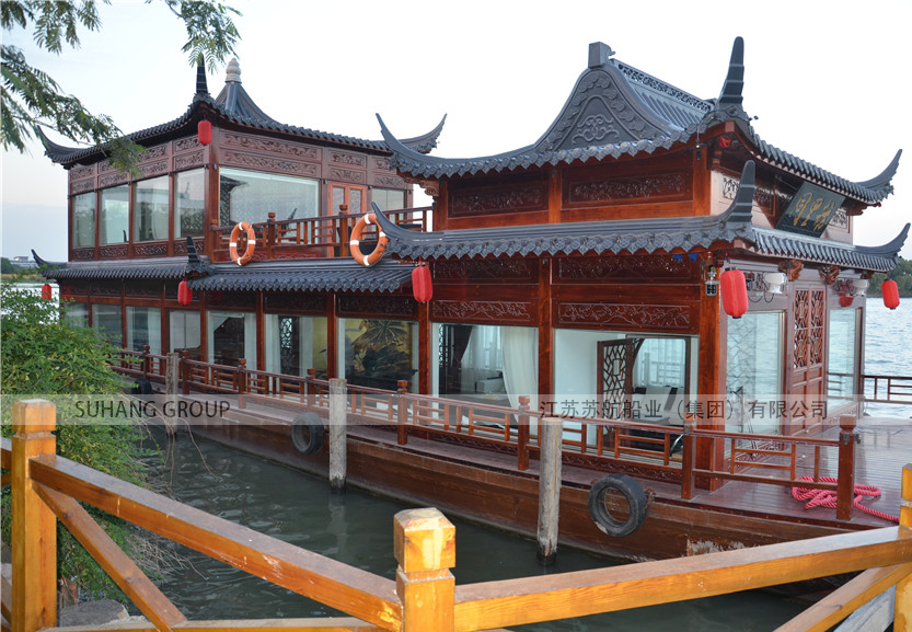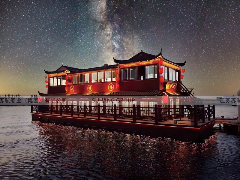 餐飲畫舫船可以是單層畫舫船,也可以是雙層畫舫船,主要看提供餐飲服務(wù)的規(guī)模。有些餐飲畫舫船主要是提供水上餐飲服務(wù)、宴飲服務(wù),這樣的餐飲畫舫船可以固定位置,采用外部電源,相當(dāng)于水上餐廳船。通常餐飲畫舫船是既可以提供餐飲服務(wù),也可以用于水上游覽觀光的非單一功能畫舫船。