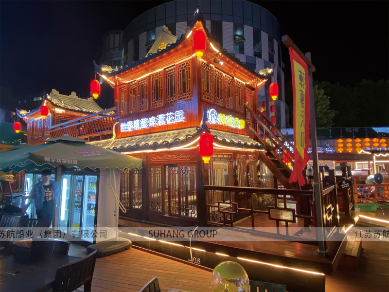 餐飲畫舫船可以采用單層或多層船體結(jié)構(gòu)設(shè)計(jì),外觀可以采用唐宋明清等古代建筑風(fēng)格。餐飲畫舫船的種類多樣,既可以滿足人們?cè)谒舷硎苊朗车男枨?,也可以提供水上觀光、游玩體驗(yàn),是現(xiàn)代水上旅游的重要組成部分。