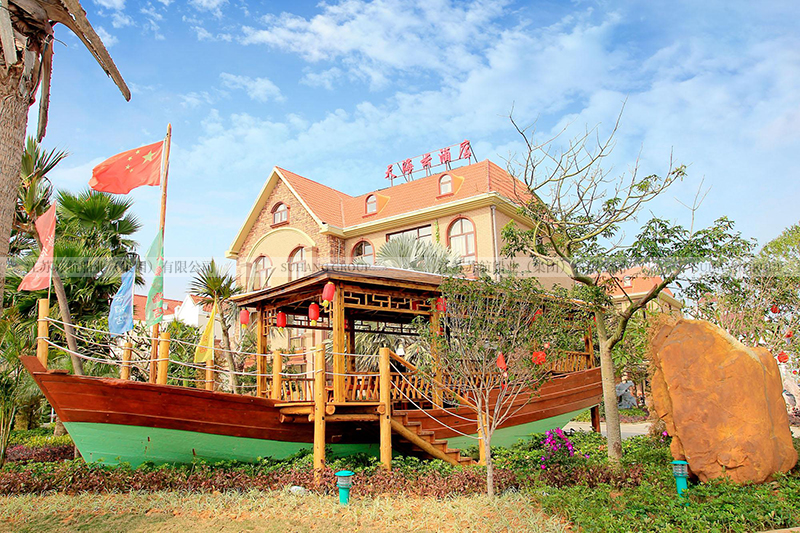 度假村裝飾木船顧名思義是指用于度假村、旅游景點的裝飾性船只。這些裝飾木船具有較高的觀賞性,結(jié)合了中國傳統(tǒng)木船制造工藝和雕刻藝術(shù),可以作為景觀裝飾,極具觀賞性和標志性。