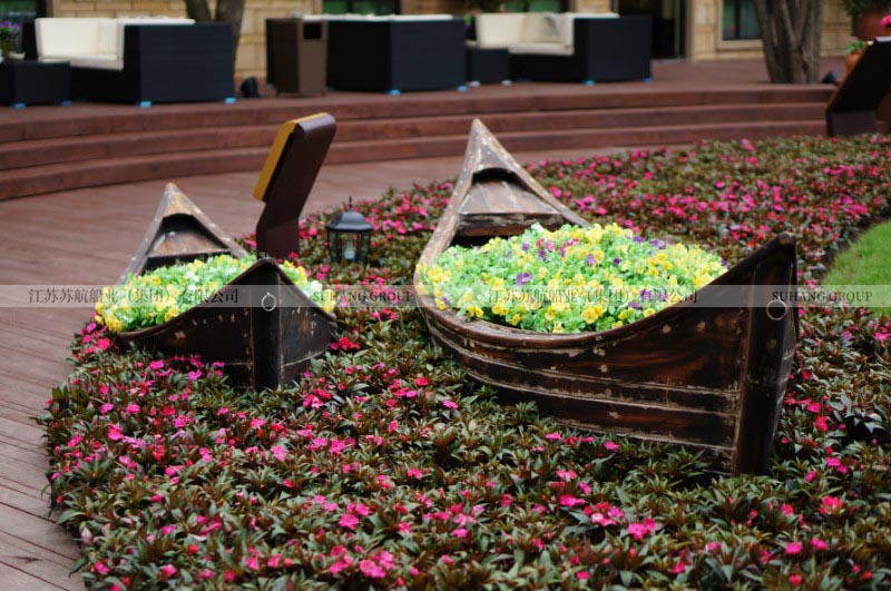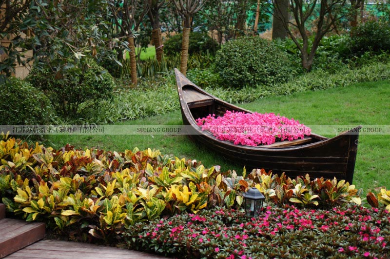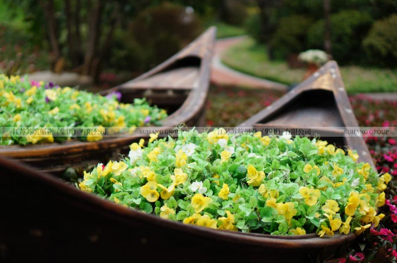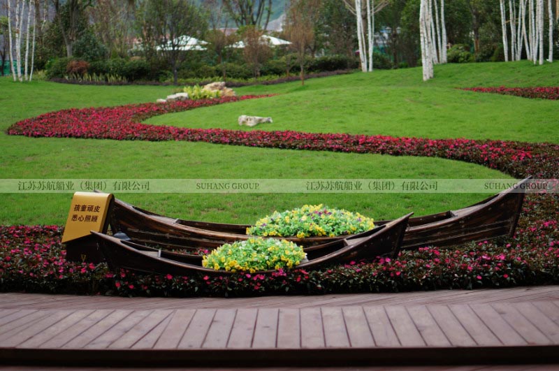 公園花船中的花卉可以采用假花,也可以用真的種植花卉,根據(jù)實際需求選擇。