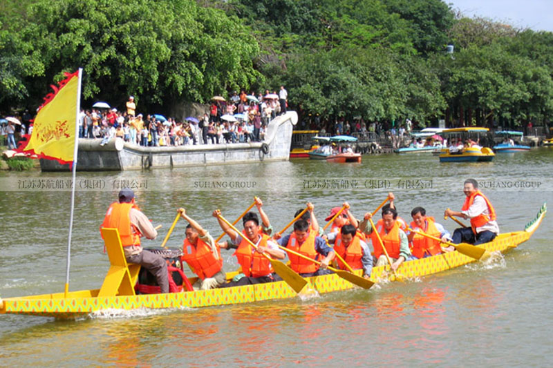 12人木質(zhì)龍舟通常配有10名劃手,10只手劃槳,1個(gè)鼓手、1個(gè)舵手。