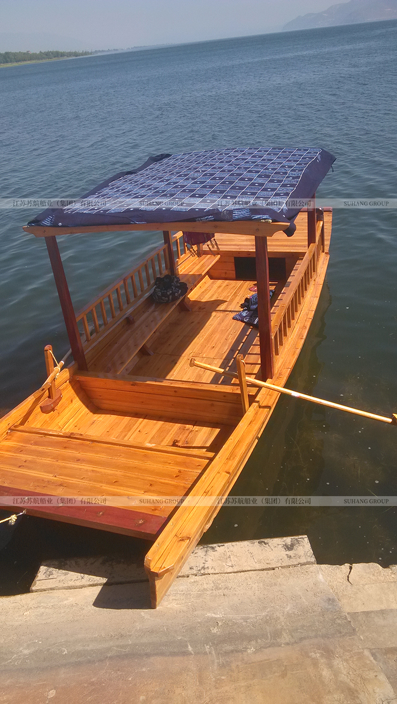 單篷船用途廣泛,不僅可以作為景區(qū)觀光船,還可以作為休閑聊天的場所,是一種結(jié)合了實用性與舒適性的水上觀光旅游船。手劃單篷游船的特色就在于傳統(tǒng)手劃行駛方式及單篷設(shè)計,為乘客提供了舒適的水上觀光旅游環(huán)境。