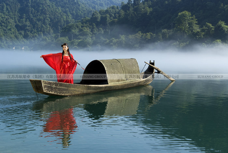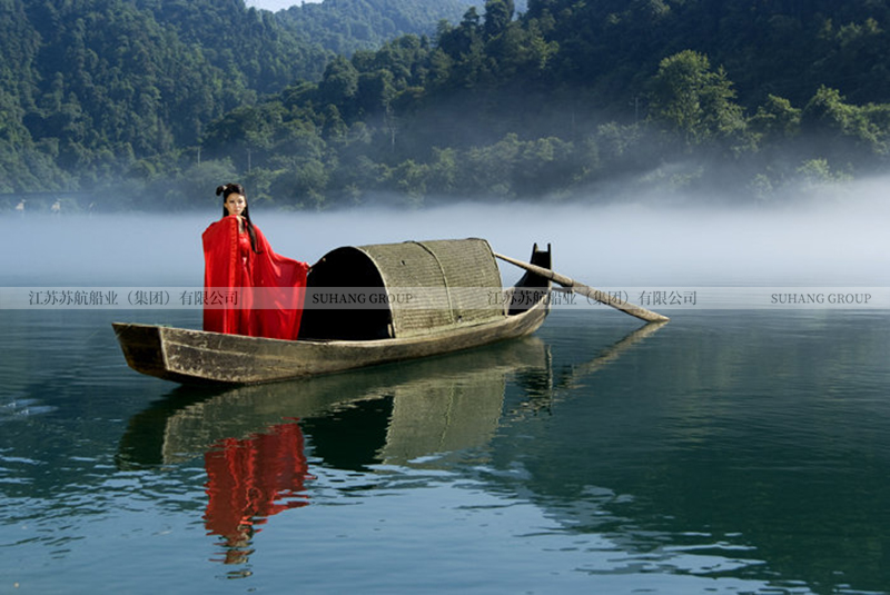 搖櫓船屬于劃槳船,依賴劃槳的搖動(dòng)來(lái)推進(jìn)船只前進(jìn)。搖櫓船通常采用木質(zhì)頂棚加席蓬作為裝飾,可以防曬,防雨。