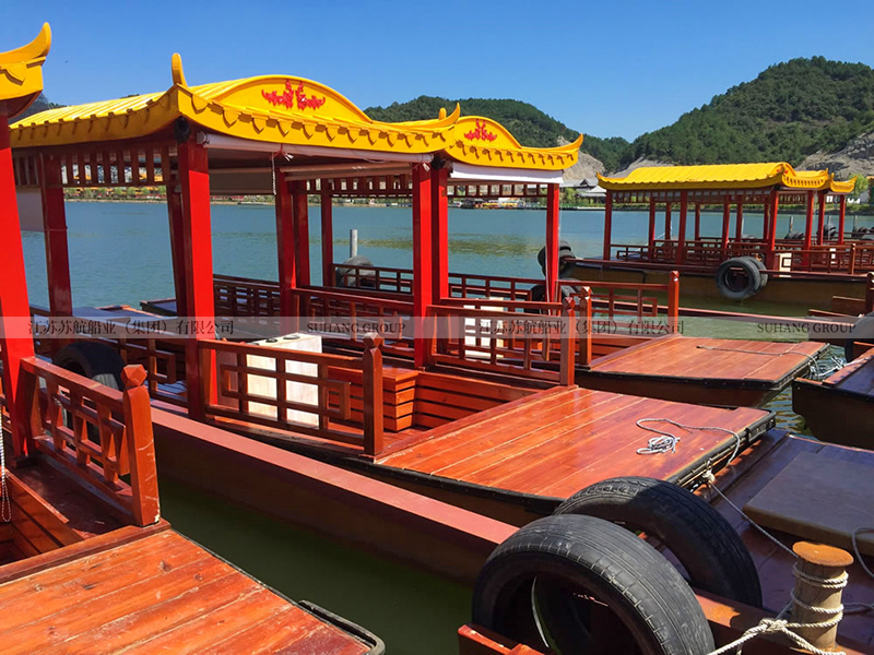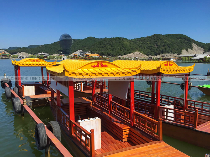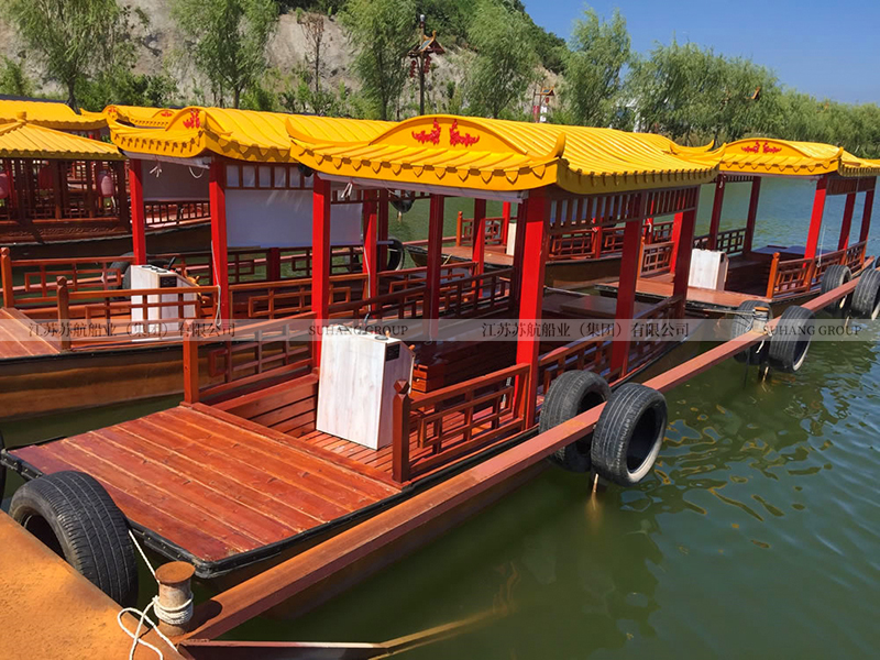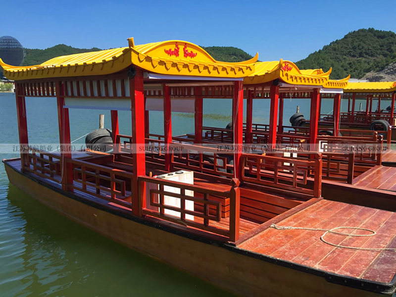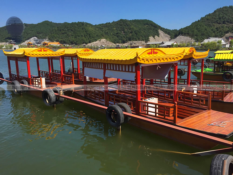 觀光小畫舫的價格相對實惠,因為它不需要配置豪華的門窗、桌椅、發(fā)電機等,是旅游景區(qū)湖面上比較多的觀光畫舫船。