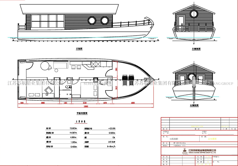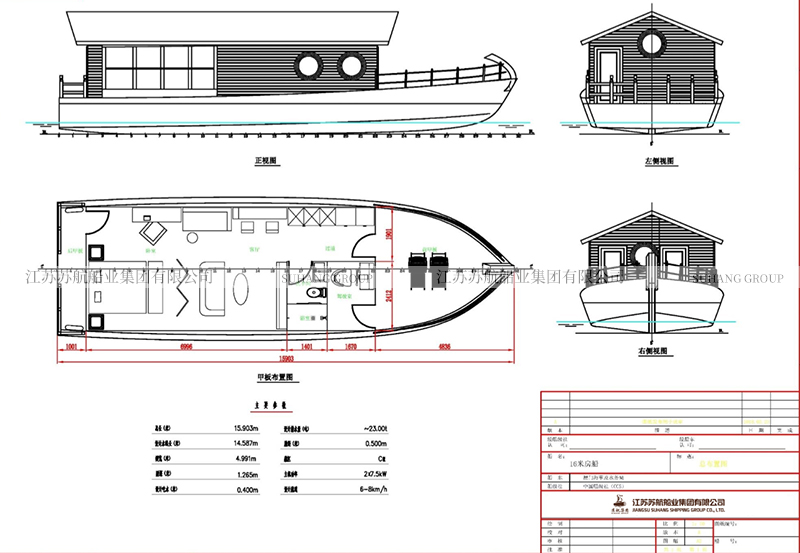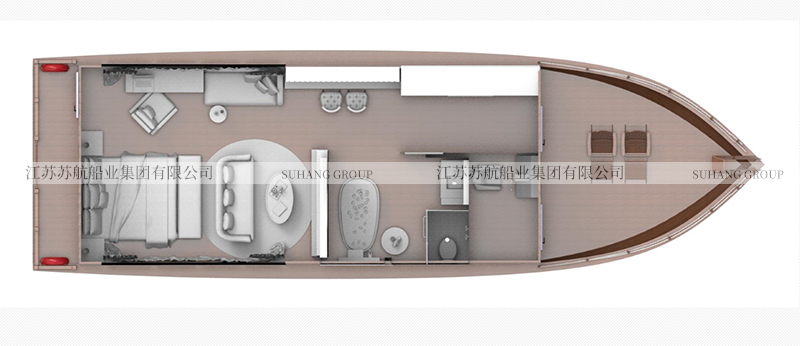 此款水上賓館船,可以采用全木制材料,也可以采用鋁鎂合金材料,也可以根據(jù)用戶需求采用鋁合金跟木質(zhì)相結(jié)合。